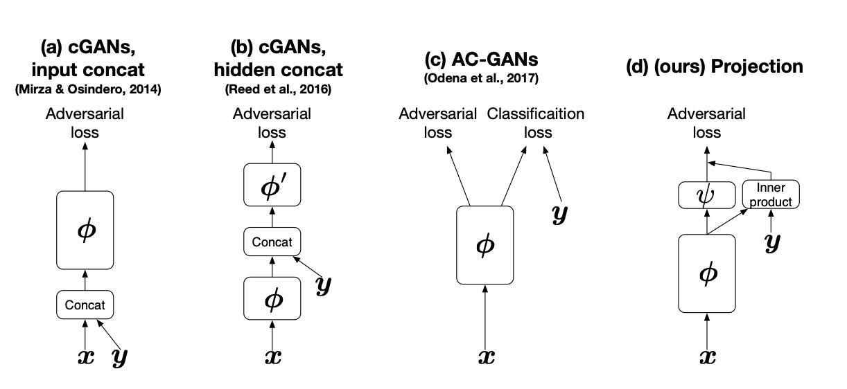 How it works: In cGAN (paper), the extra information (can be a label corresponding to one class of the dataset for instance) is preprocessed (one-hot or embedding) and concatenated to the seed / latent representation. The extra information is then added to the output of the generative process and fed to the discriminator. The discriminator is responsible of the good conditional generation results. GANs generally suffers from mode collapse and cGAN is no exception. The generator fails to output data samples that are as diverse as the distribution of the real-world data. To tackle this issue, the authors propose to change the way the extra information is added. In practice, it helps the model at converging to an optimal solution more steadily.