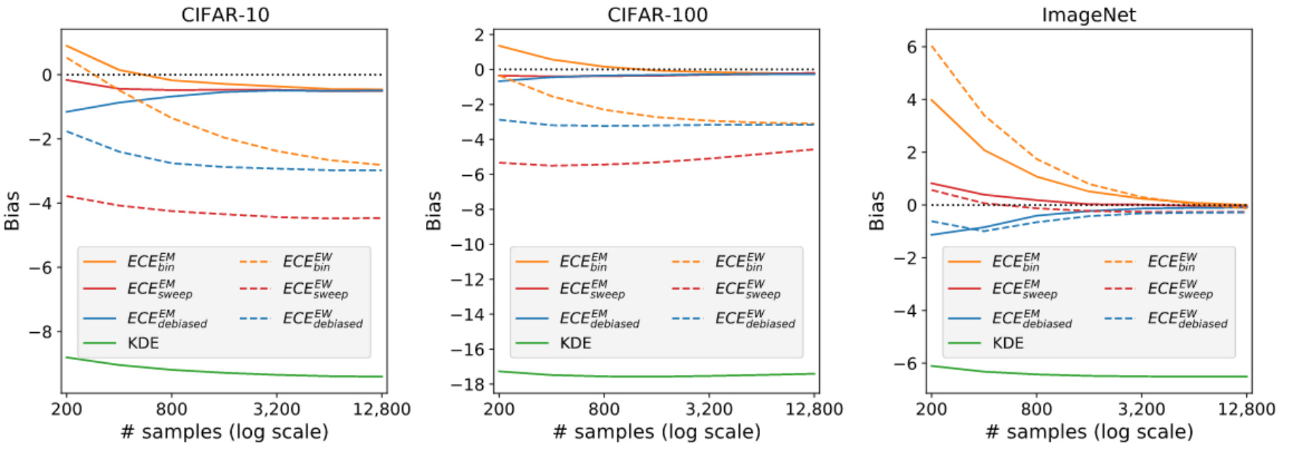 Bias is computed as the difference between the ECE of the chosen estimator and the TCE.